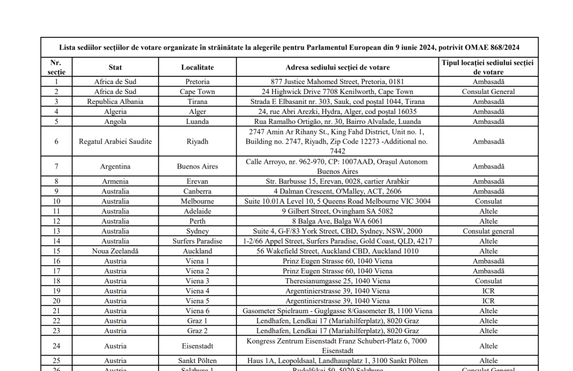 Pentru mai multe detalii, inclusiv lista completă a secțiilor de vot din străinătate, cetățenii sunt încurajați să consulte sursele oficiale, precum site-ul Ministerului de Externe al României.