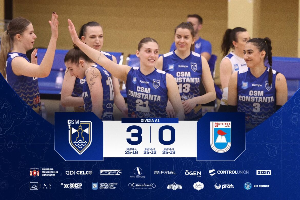 CSM Constanța se impune în prima partidă cu CS Știința Bacău scor 3-0 (25-16, 25-12, 25-13) în playout-ul Diviziei A1 la volei feminin. A fost un meci în care Kristiana Petrova a fost principala realizatoare a echipei noastre, cu 17p. Au urmat-o Andreea Cimpu 10p, Iveta Stanchulova 10p, Teodora Iancu 10p, Spînoche 5p, Grama 3p, Manolachi 2p, Ruci 1p, au mai evoluat, Maria Știrbu, Skarleta Jancova (libero), Marilena Puică, Ana Maria Vilău, Greisy Fine Martinez și Minca Cristea fiind menajate.